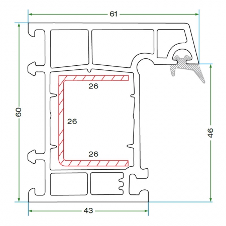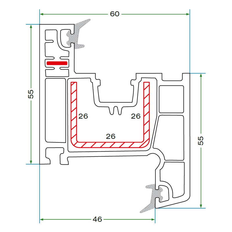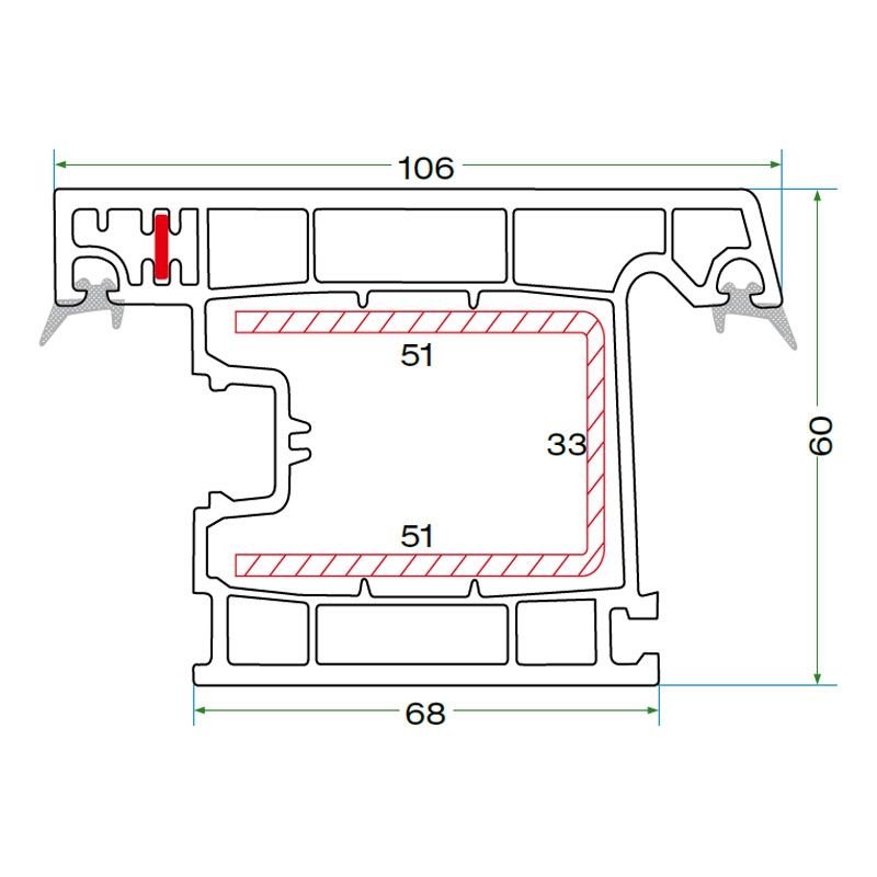 Designed to accommodate double glazing with various spacer thicknesses such as 4 + 10.5 + 4 mm.